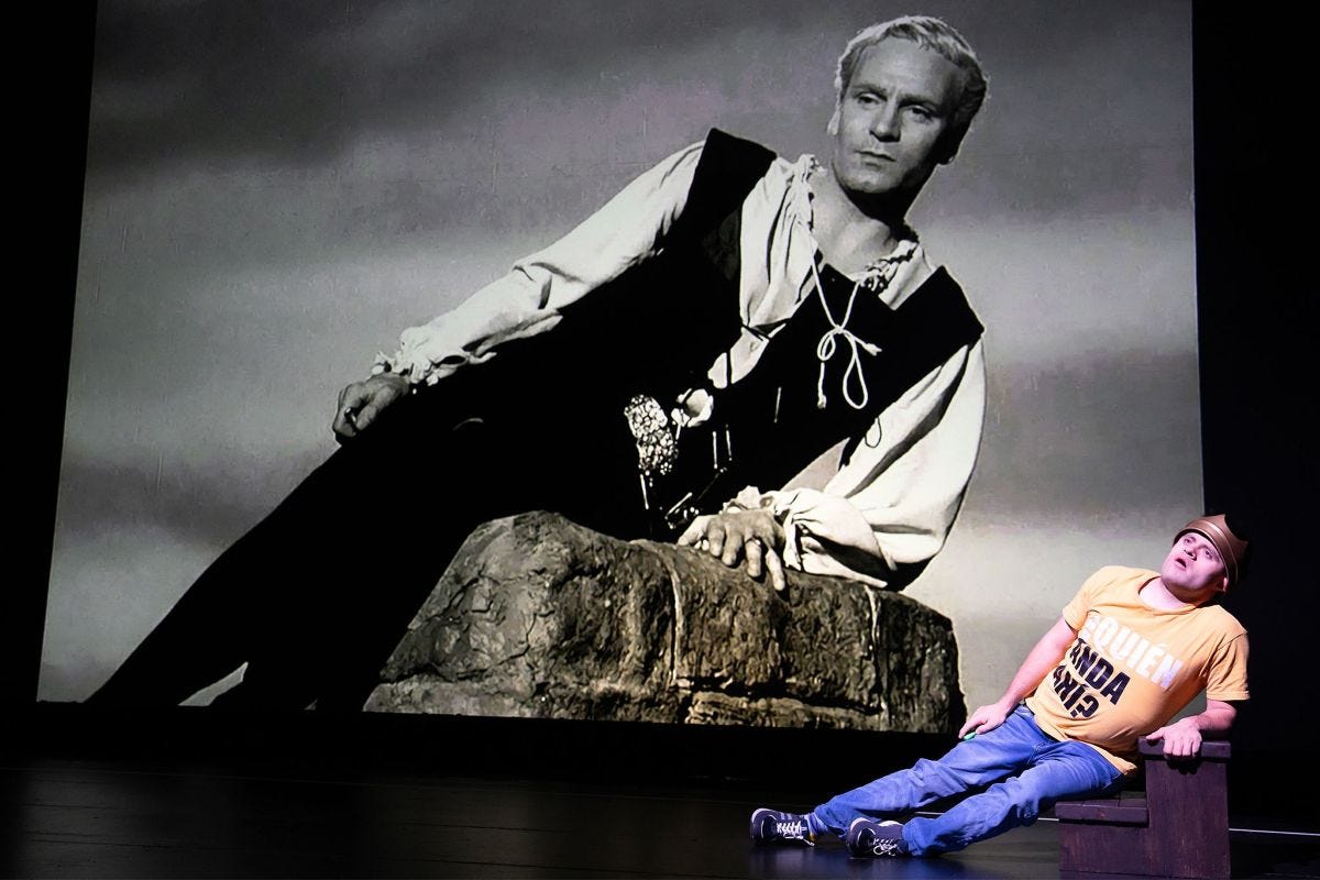 Ximena Rodríguez is a delicate heartbreaker as a somewhat modernized Ofelia, and Demarchi, as Death, weaves a pre-duel spell with a skull and ribbon dance. In what is perhaps the most memorable scene, Cruz – having FaceTimed an AI-simulated Ian McKellen – takes on the challenge of playing Hamlet. Projected on the backdrop is an overpowering image of Olivier assuming a languid pose: the princeling assailed by acedia. Cruz tries to mimic the mode, only to be called out by a fed-up director (Ǻlvaro Toledo), who aces a version burning with fervor.
